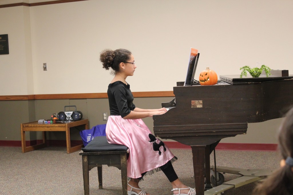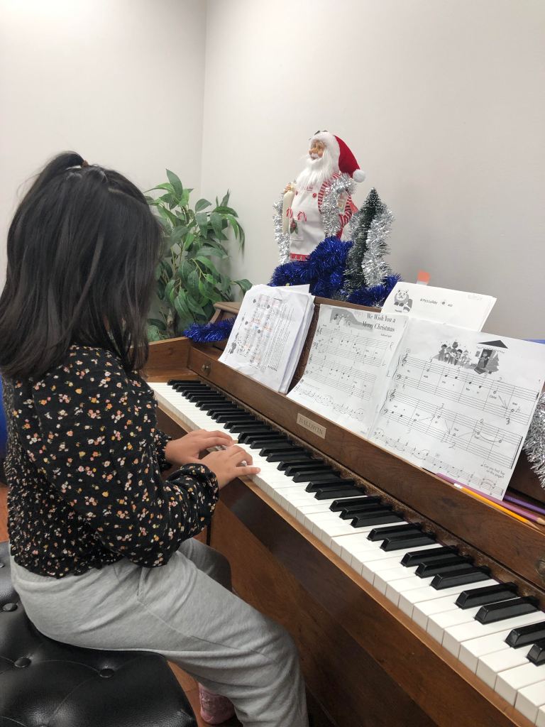 An excited student working on Christmas music on December 11th, 2024. She loves to play Christmas music! #pianolessons, #pianostudents, #pianolessons, #pianoChristmas